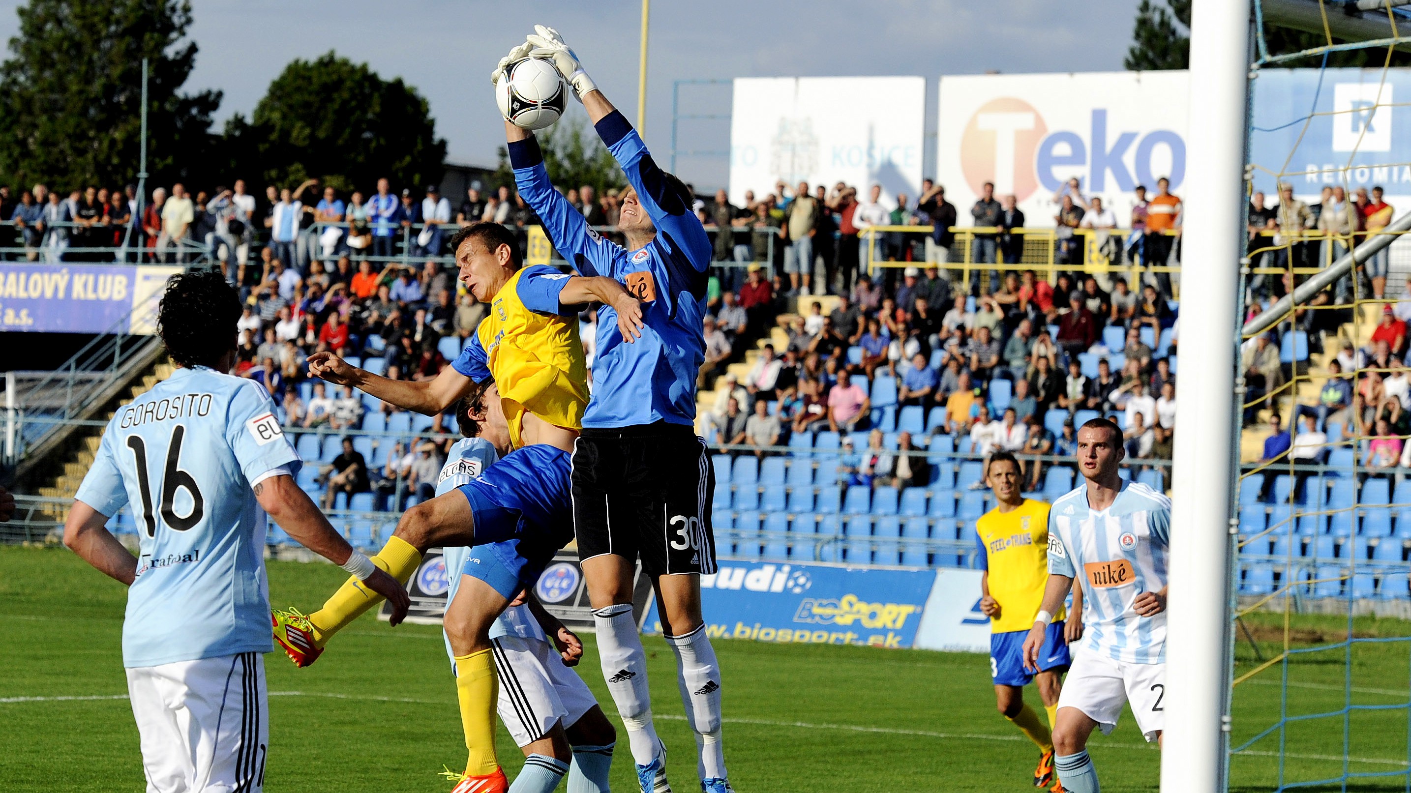 O štyri minúty neskôr Gorositova hlavička síce išla medzi žrde, no len do Tofiloského rúk. Rušný a zaujímavý futbal neustále držal divákov v napätí. Po polhodine hry si domáci vypracovali niekoľko šancí, no Exkošičan Putnocký v bránke Slovana zlikvidoval ich pokusy.
