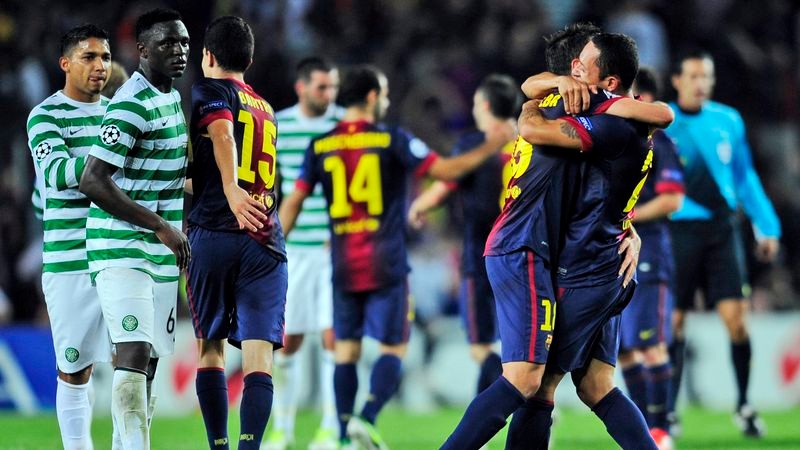 "Blaugranas" zvíťazili nad škótskym klubom 2:1, keď víťazný gól dal v nadstavenom čase reprezentačný obranca Španielska Jordi Alba. Zverenci Tita Vilanovu prehrávali doma na Nou Campe s "katolíkmi" 0:1, keď skóroval v 18. min hlavičkou grécky legionár Jorgos Samaras. Na jeho presný zásah odpovedal tesne pred polčasovou prestávkou stredopoliar Andrés Iniesta, ktorý bol na konci typickej barcelonskej akcie na jeden dotyk.