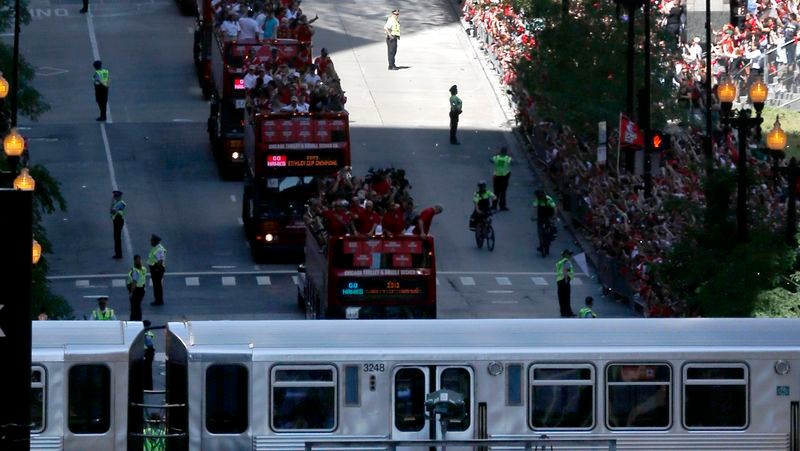 Prví fanúšikovia vyrazili do ulíc už o tretej hodine ráno. Kolóna vozov s hráčmi mužstva, ktorí vo finále play-off NHL zdolali Boston Bruins 4:2 na zápasy, sa vydala na cestu po desiatej hodine dopoludnia miestneho času. Na ceste ju zdravili fanúšikovia, ktorí postávali od jazera Michigan až po Grant Park.