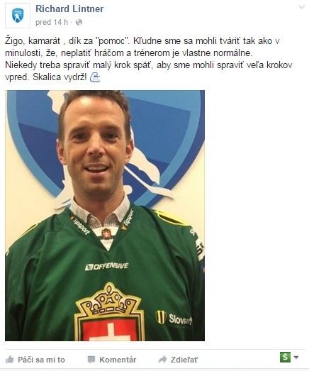 Richard Lintner vzápätí reagoval príspevkom na facebooku s vlastnou fotografiou v drese Skalice.