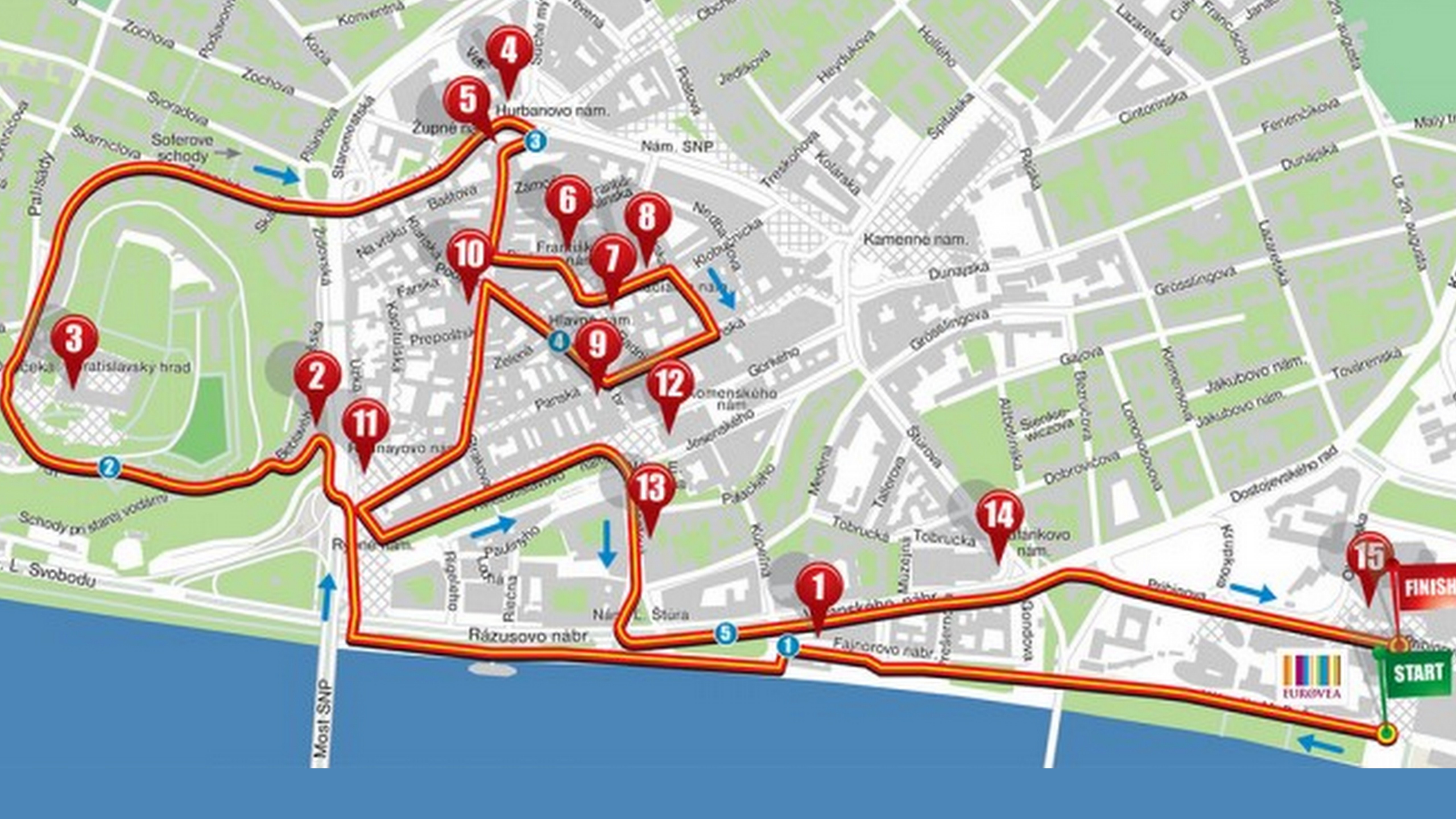 Bežci uvidia napríklad Redutu a historickú budovu SND, populárneho Čumila, Dom U dobrého pastiera, majestátnu Katedrálu sv. Martina či dominantu našej metropoly bratislavský Hrad.